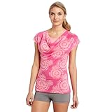 The pictures of this double layer "tee" are extremely misleading. The top, patterned layer has a very wide neckline and one side constantly falls off one shoulder (and I have broad shoulders). This is annoying.