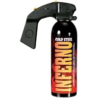 In my experience, Cold Steels Inferno brand spray is (IMHO) the best defense spray available to non-Law Enforcement individuals because of the added black pepper oil. It really does make the attacker sneeze violently, thus sucking more and more spray deep into lung tissue usually not reached by other sprays. In my direct experience an attacker sprayed with 2 quick bursts of inferno was unable to continue an attack because (specifically) they cannot see, their face, eyes, throat, and lungs burn with great ferocity, they involuntarily vomit and sneeze over and over (when you sneeze your eyes involuntarily close, AND ----rapid-fire sneezing, vomiting and restricted breathing not from dangerous swelling, but from the raw pain of having strong irritants drawn deep into the most sensitive parts of the lungs ----Tend to cause hyperventilation and the light-headedness and disorientation that comes with it). In addition, the large unit sprays out more volume with more force at a greater distance than the "pocket" models are able to, so it's able to bypass protection like hoods or glasses and so gives citizens a real fighting chance to prevail against multiple, physically strong and/or heavily intoxicated, or (ONLY in DESPERATE situations) even armed assailants. It's a little inconvenient to carry, but worth the trouble especially for night workers. IMHO Only a Taser or sidearm is more effective and the average wait-person (or other night-worker) can't afford a Taser or sidearm as easily as this model Inferno spray.Friday, May 2, 2014